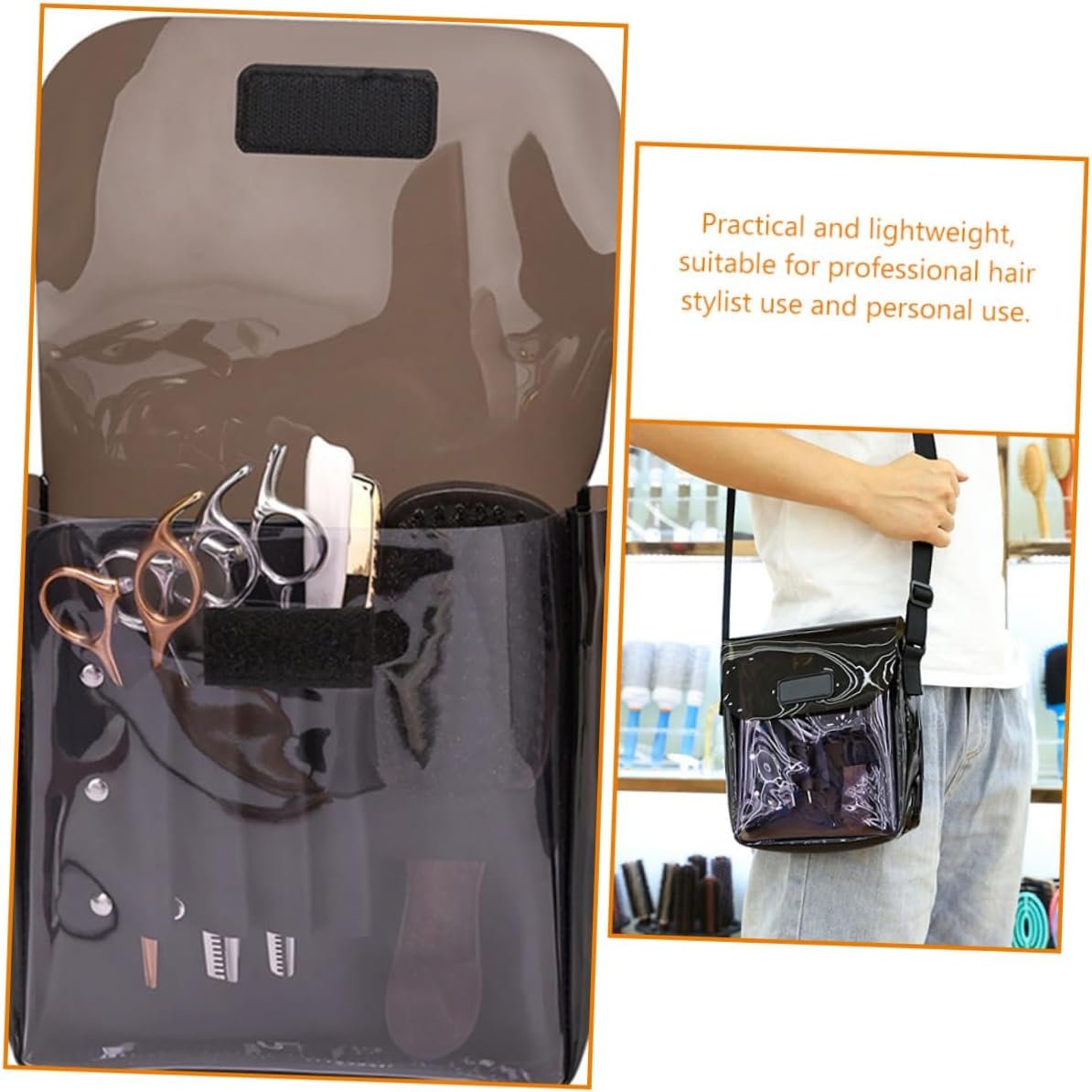 This versatile and durable hair stylist bag is a must-have for professionals in the beauty industry. Designed to store and organize your hair styling tools, makeup essentials, and barber equipment, this bag keeps everything neat and easily accessible. The high-quality PVC material ensures durability, while the shoulder strap makes it easy to carry wherever you go.