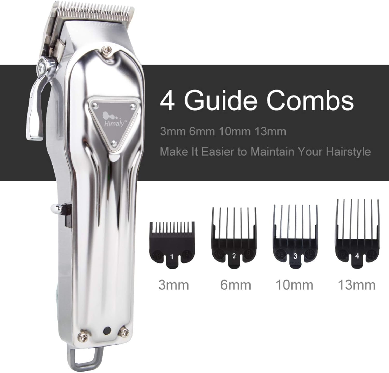 Versatile Clipping Kit: Includes 4 guide combs for customizable haircuts and beard trims.